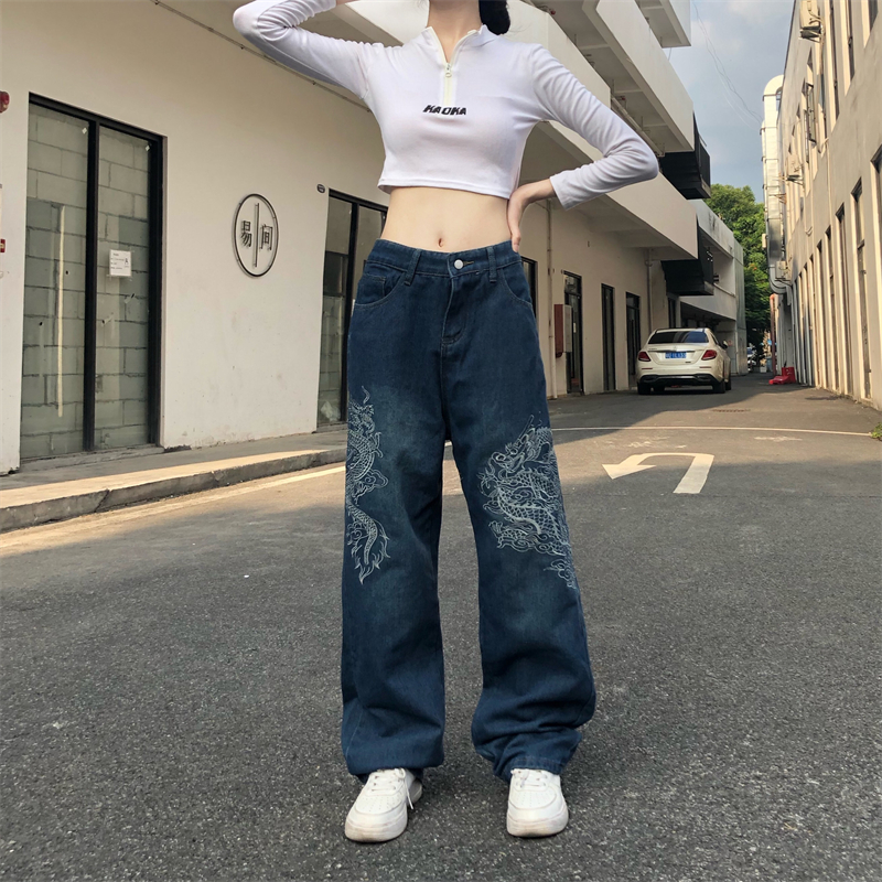 Embroidered Versatile Loose Slim Wide-leg Straight-leg Pants