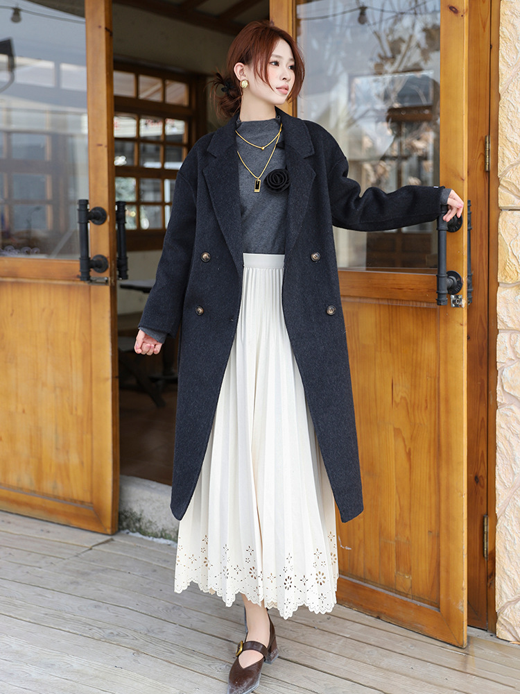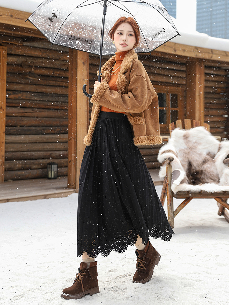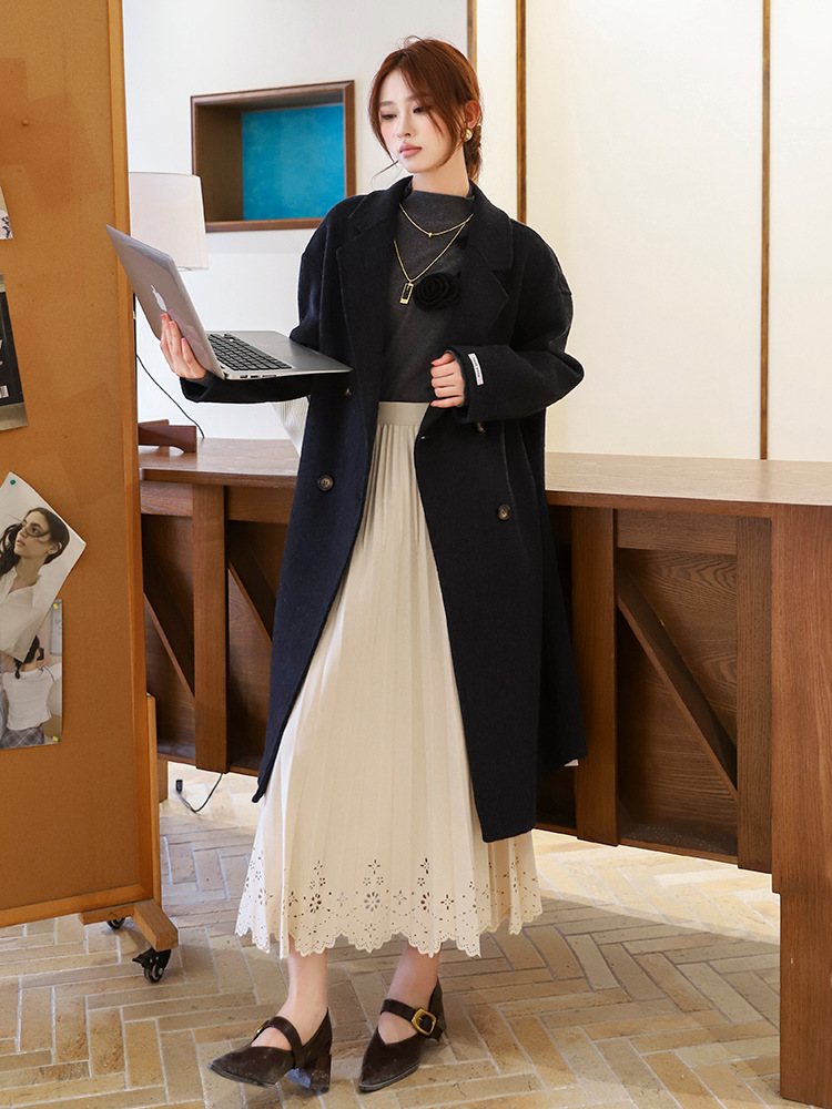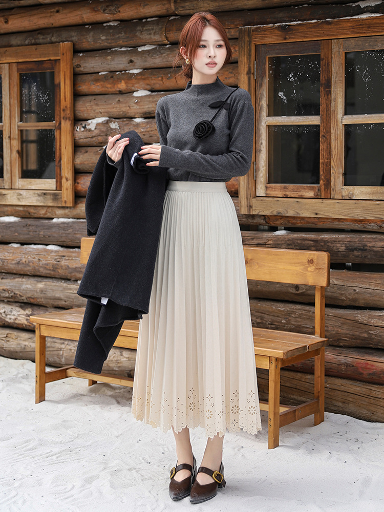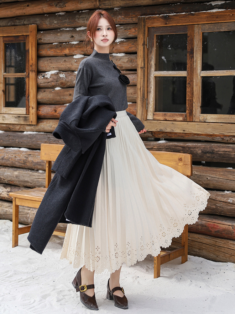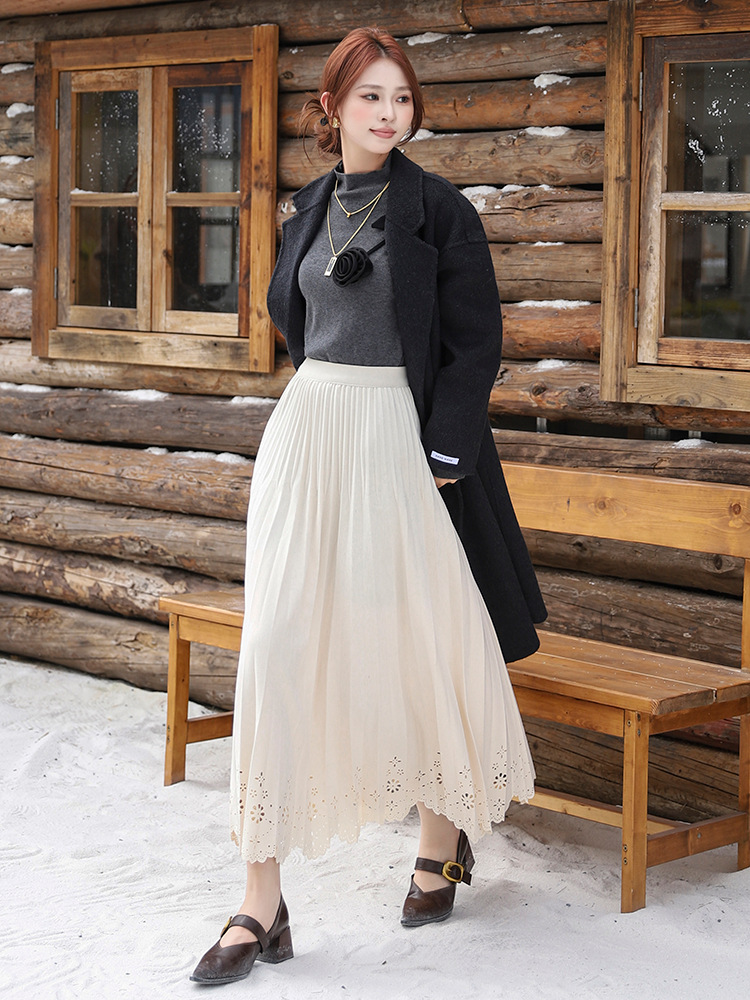 Simple Hollow Lace Midi Skirt Women